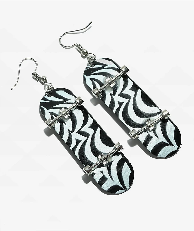 Stone + Locket Wavy Board Black & White Earrings