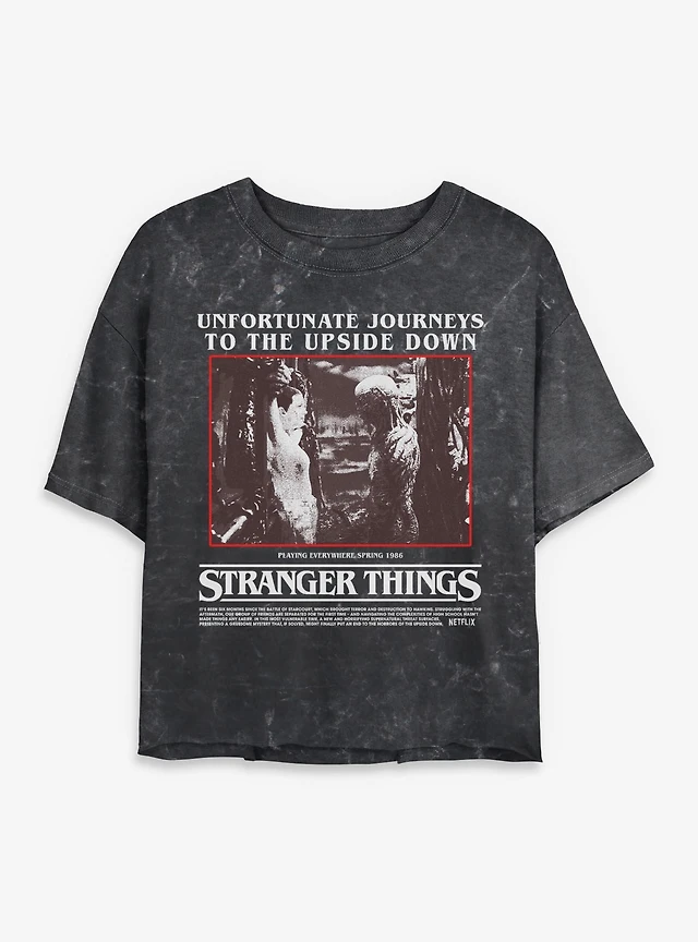 Stranger Things Welcome To The Upside Down Character Panels Womens Mineral Wash Crop T-Shirt