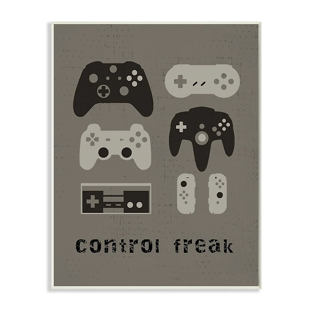 Stupell Industries My Game Face Phrase Yellow Smiley Retro Controller Canvas Wall Art
