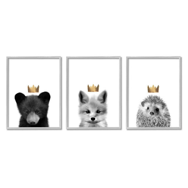 Stupell Industries Woodland Animals Bold Crowns Black Bear Fox Hedgehog Framed Wall Art