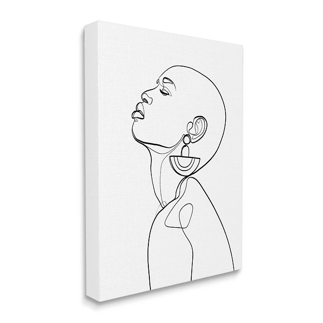 Stupell Industries Woman Wearing Circular Earrings Black Line Fluid Abstraction Canvas Wall Art