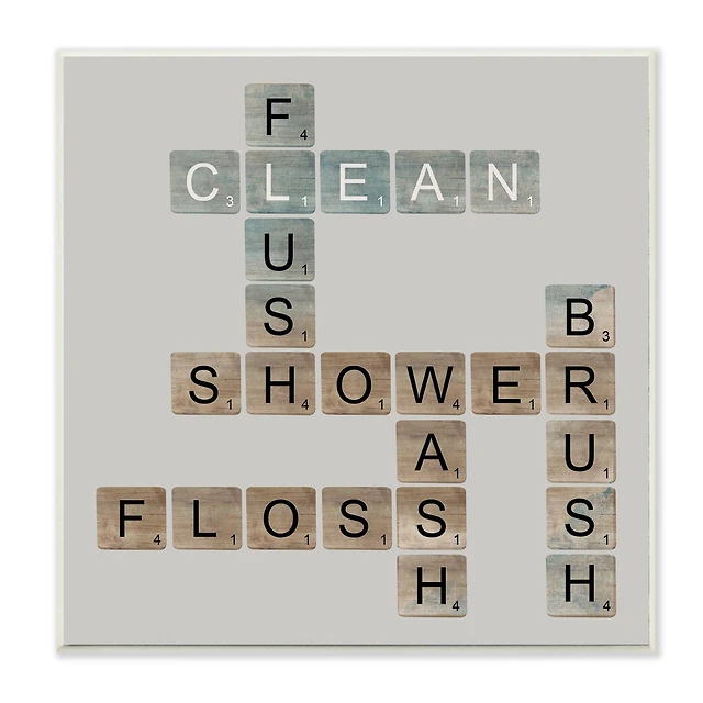 Stupell Industries Scrabble Bathroom Illustration, 12" x 12"