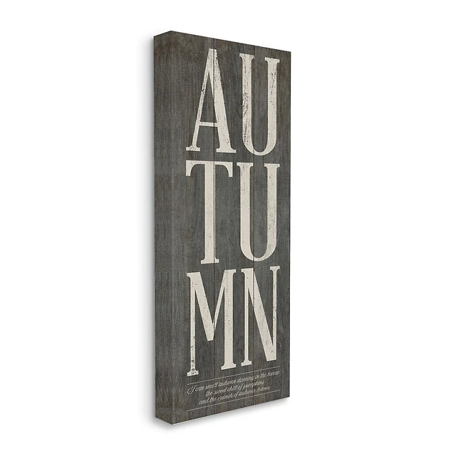 Stupell Industries Autumn Grey Wood Textured Fall Seasonal Word Design Canvas Wall Art