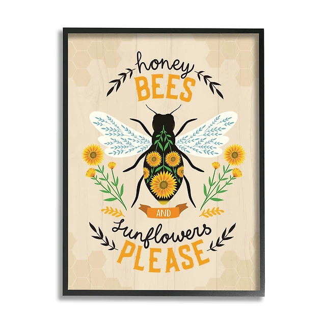 Stupell Industries Honey Bees Sunflowers Please Spring Garden Floral Phrase in Frame Wall Art