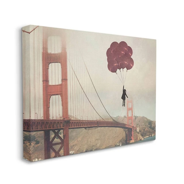Stupell Industries Bridge Girl Balloons Abstract Modern Collage Design Canvas Wall Art