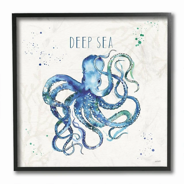 Stupell Industries Deep Sea Text Octopus Blue Green Watercolor,12" x 12"