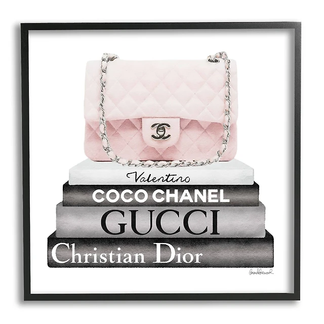 Stupell Industries Yorkie Puppy Glam Quilted Purse Fashion Bookstack Framed Wall Art