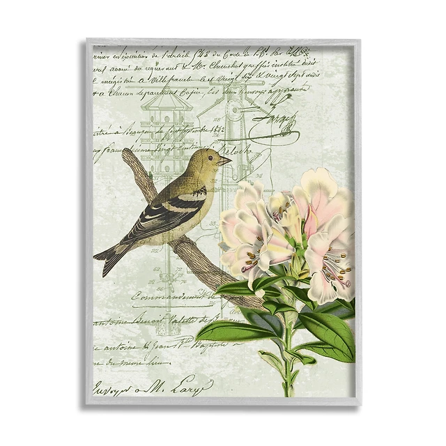 Stupell Industries Bird House Vintage Patent Lily Floral American Goldfinch Framed Wall Art