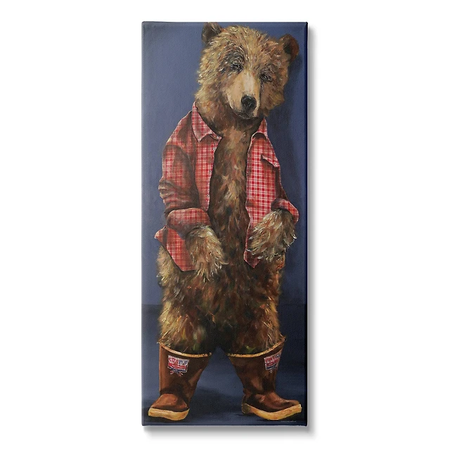 Stupell Industries Forest Brown Bear Rainboots Flannel Shirt Rustic Animal Canvas Wall Art