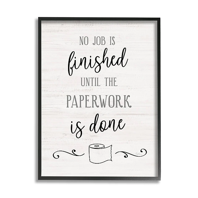 Stupell Industries No Job Finished Until Paperwork Done Toilet Paper Framed Wall Art