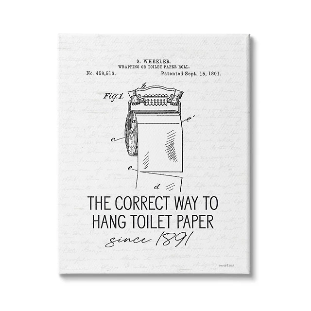 Stupell Industries Vintage Bathroom Diagram Correct Way Hang Toilet Paper Canvas Wall Art