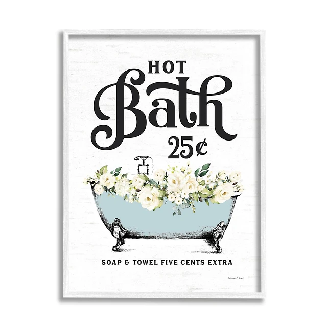 Stupell Industries Hot Bath Vintage Advertisement White Floral Blue Tub Framed Wall Art