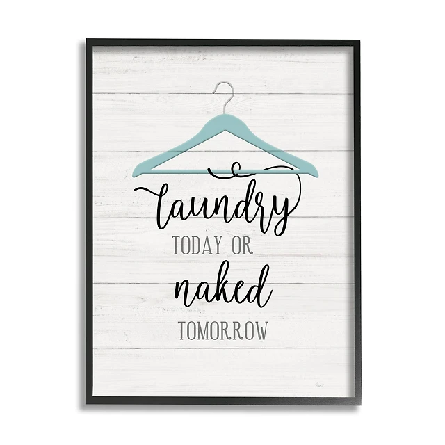 Stupell Industries Laundry Today Naked Tomorrow Laundry Traditional Blue Hanger Wall Plaque