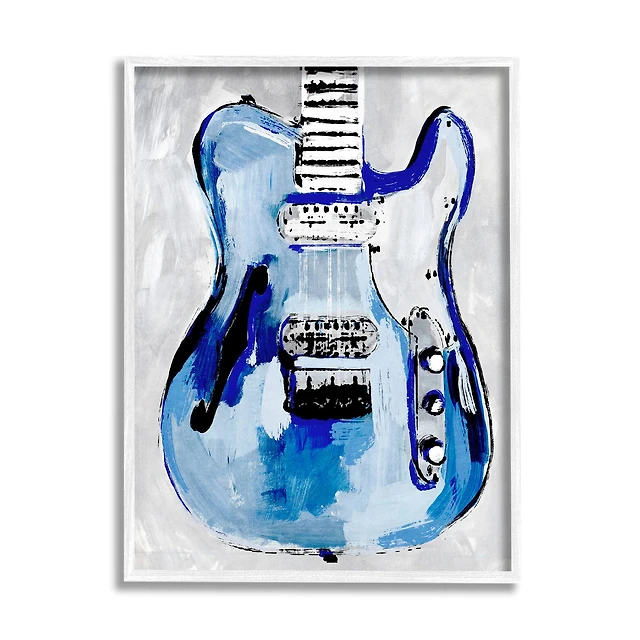 Stupell Industries Abstract Rock Guitar Body Modern Blue Painting Framed Wall Art