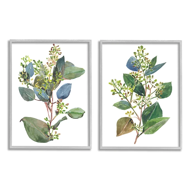 Stupell Industries Soft Eucalyptus Plant Blue Green Ombre Leaves Framed Wall Art