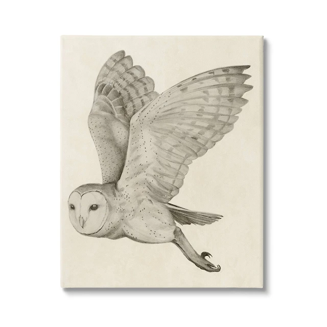 Stupell Industries Flying Barn Owl Wings Detailed Drawing Canvas Wall Art