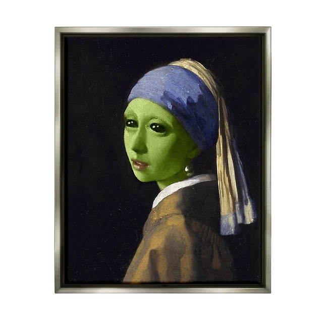 Stupell Industries Girl With Pearl Earring Alien Framed Floater Canvas Wall Art