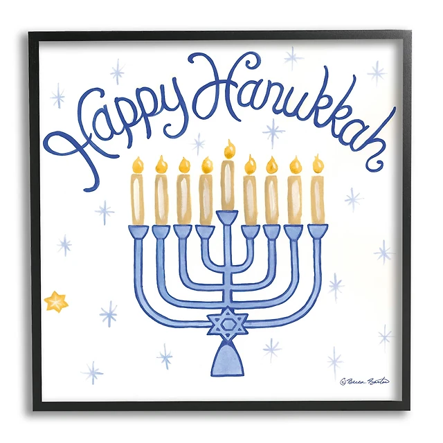 Stupell Industries Festive Happy Hanukkah Menorah Patterned Framed Giclee Art