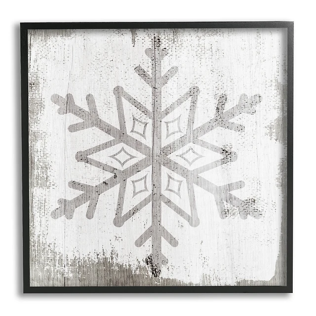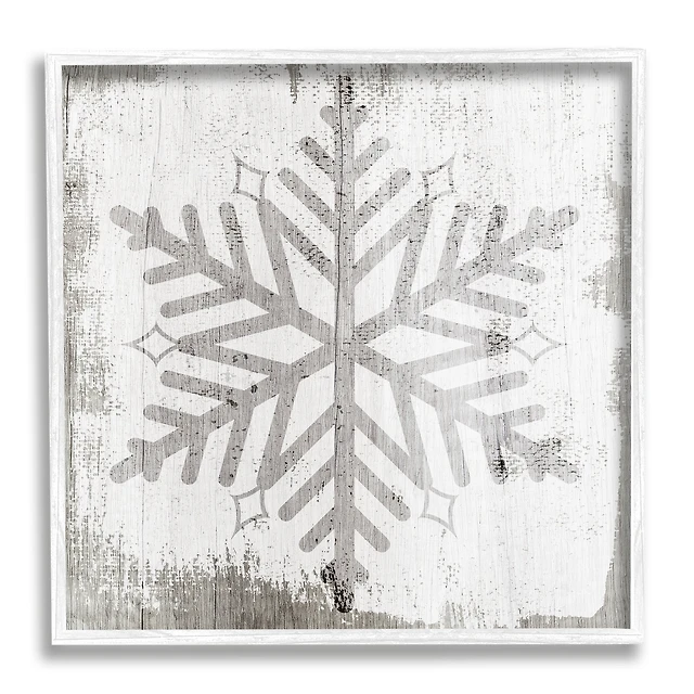 Stupell Industries Winter Snowflake Weathered Pattern Framed Giclee Art