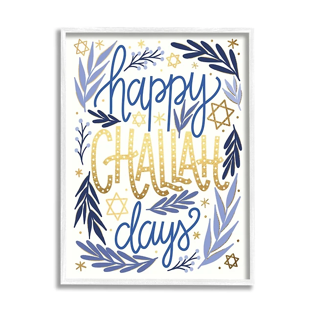 Stupell Industries Happy Challah Days Hanukkah Stars Framed Giclee Art
