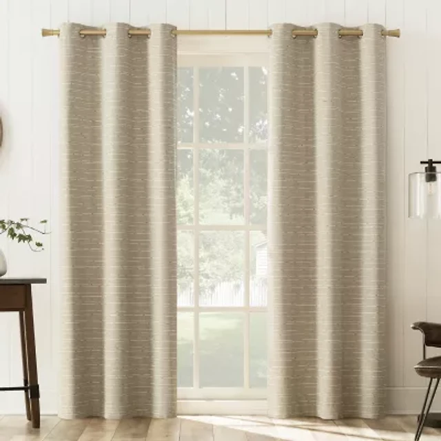 Sun Zero Presley Herringbone Magnetic Rod Pocket Light-Filtering Set of 2 Curtain Panel