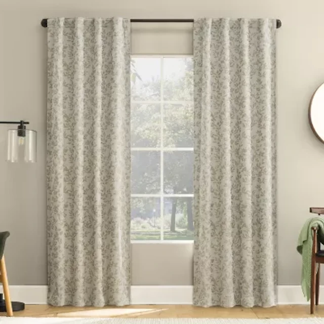 Sun Zero Estelle Foliage Woven Back Tab Light-Filtering Set of 2 Curtain Panel