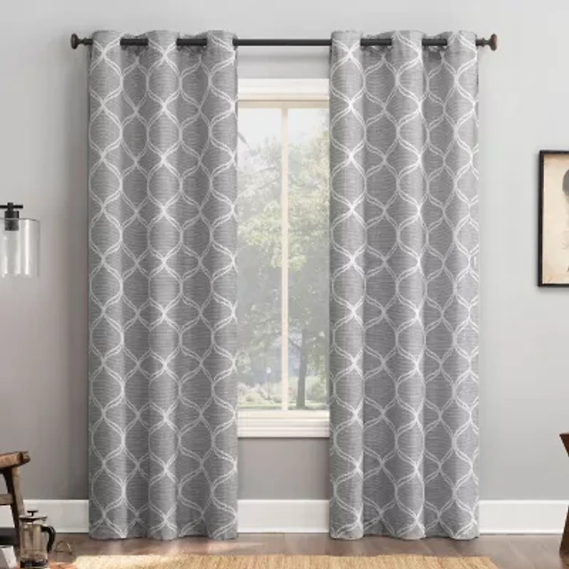 Sun Zero Tikal Woven Ogee Grommet Top Light-Filtering Single Curtain Panel