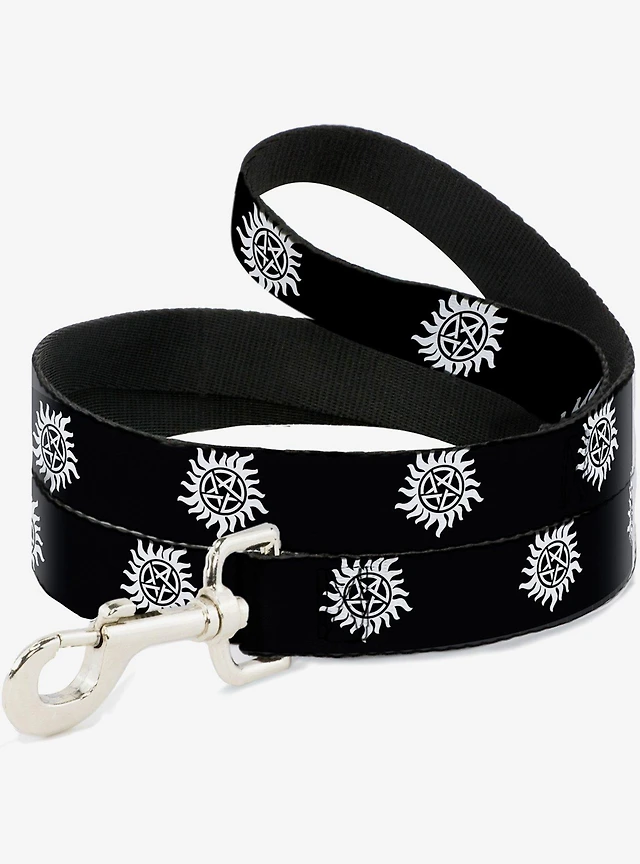 Supernatural Winchester Pentagram Repeat Black White Dog Leash 6 Ft