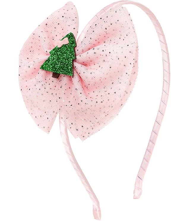 Sweet Wink Girls Christmas Tree Tulle Bow Headband