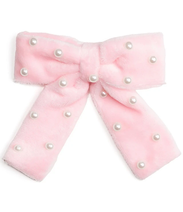 Sweet Wink Little Girls Pink Velvet Pearl Bow Clip