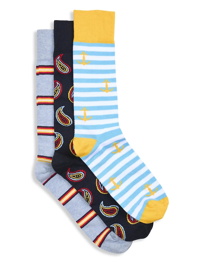 3-Pk Classic Printed Socks