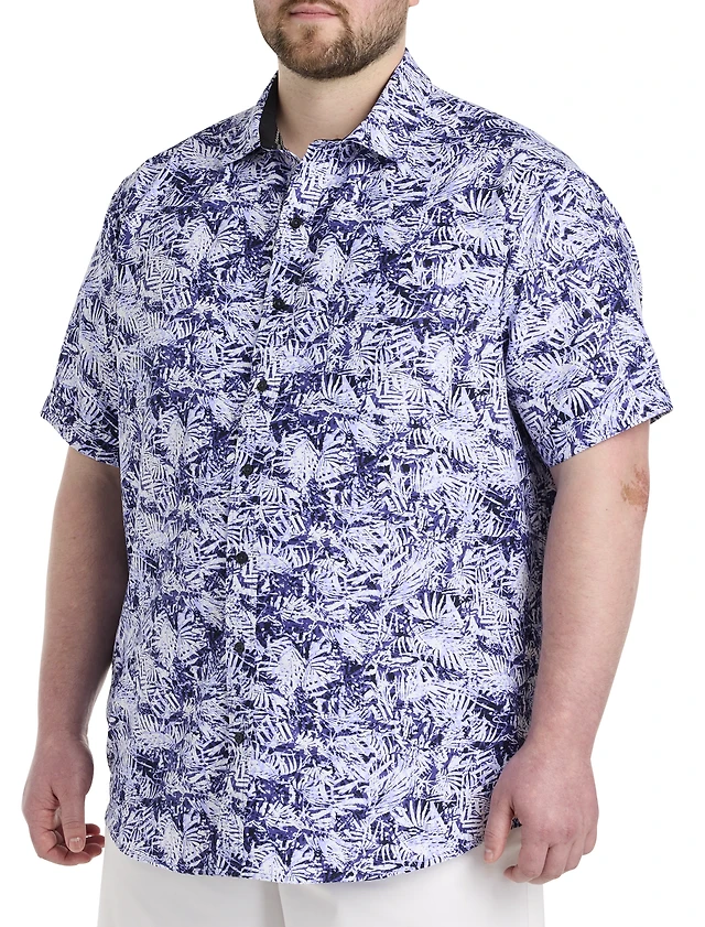 Leaf Print Microfiber Sport Shirt