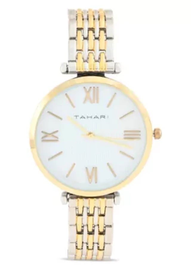 Tahari Adult Womens Analog Watch w Gold Case and Two-Tone Gold Silver Dial and Bracelet Model# TAH5522