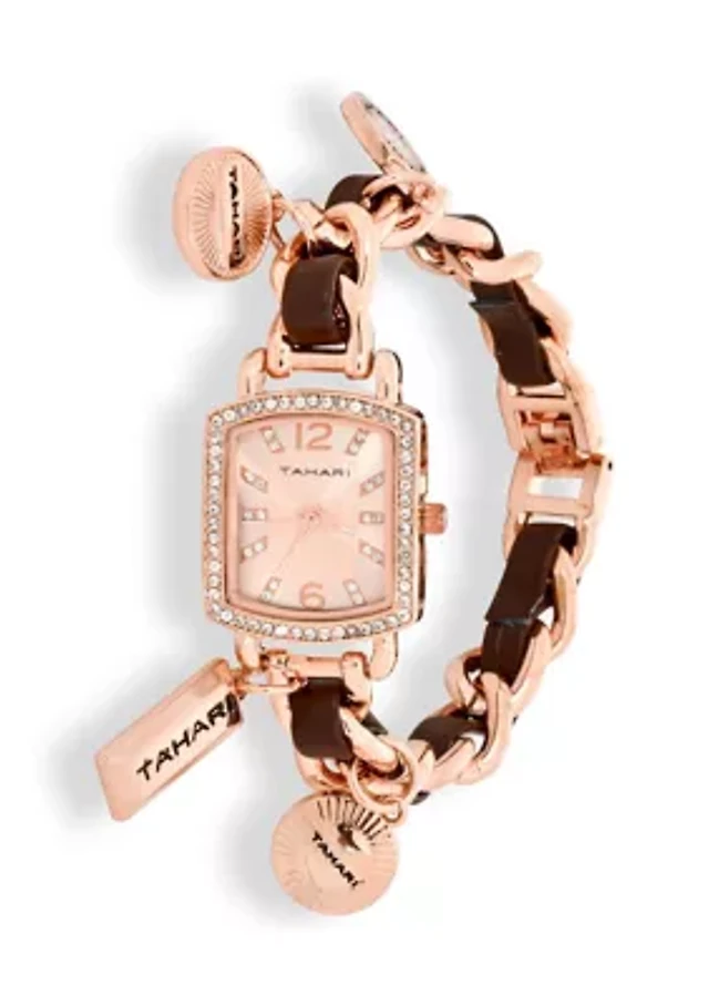 TAHARI Ladies Rose Goldtone Charm Watch