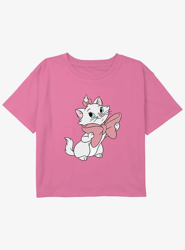 Disney The Aristocats Marie Cute Bow Smile Youth Girls Boxy Crop T-Shirt