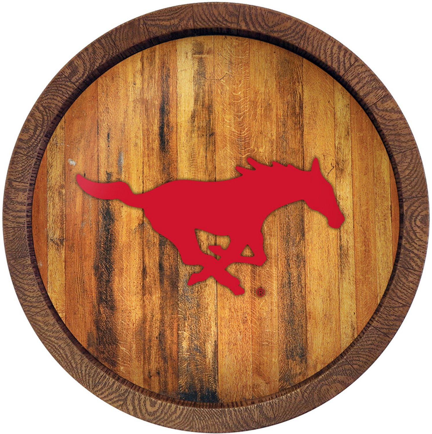 The Fan-Brand Southern Methodist University Weathered Logo Faux Barrel Top Sign
