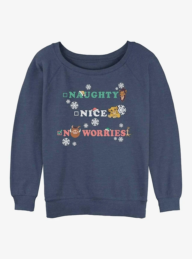 Disney The Lion King Naughty Nice Worried Womens Slouchy Sweatshirt