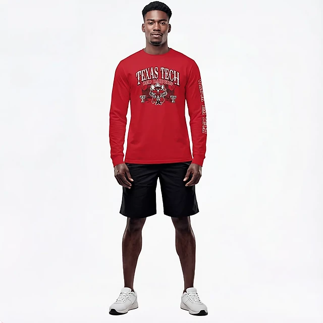 The Victory Men's Texas Tech University School Arch Mascot Sleeve 2 Hit Long Graphic T-shirt