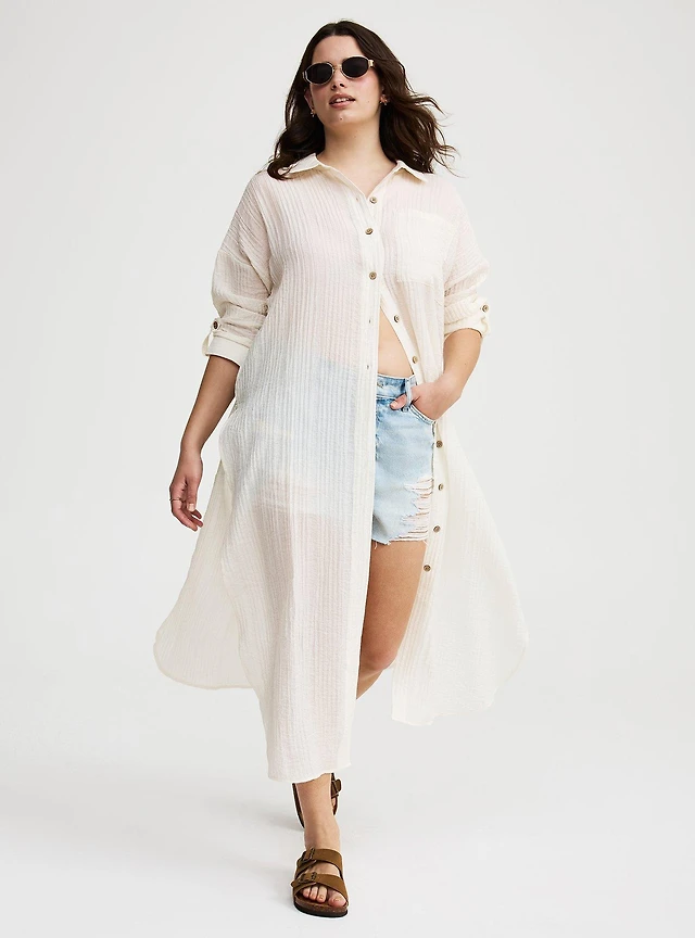 Crinkle Gauze Off-Shoulder Top