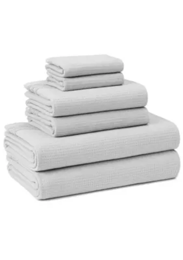 TOWN & COUNTRY LIVING 6-Piece Assorted Waffle Woven Terry Stripe White Bath Set