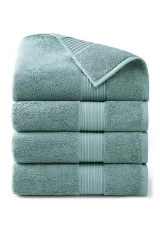 TOWN & COUNTRY LIVING 4-Piece Solid Dobby Border Blue Bath Towel Set