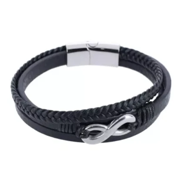 Loose Fit Infinity 3 Band Secure Clasp Leather Bracelet