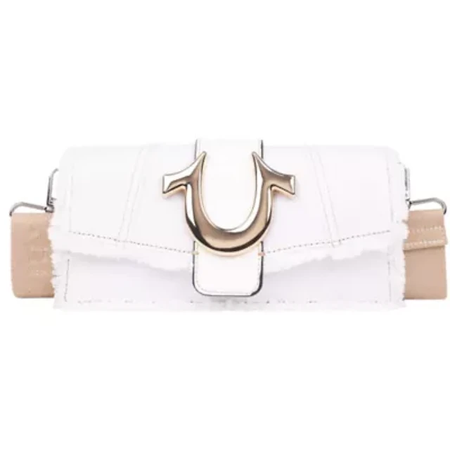 True Religion Studded Horseshoe Eyelet Denim Flap Bag