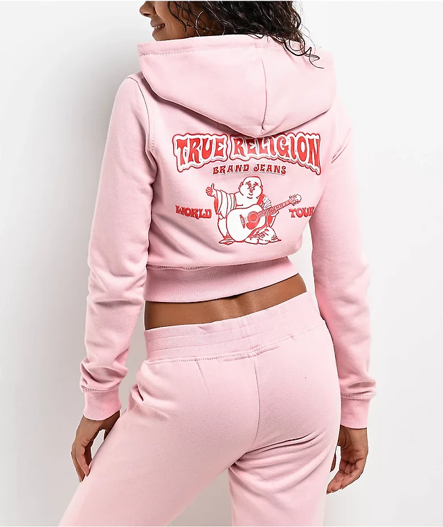 True Religion Big T Logo Pink Crop Zip Hoodie