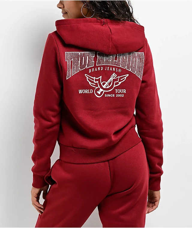True Religion Crystal Wing Rosebud Crop Zip Hoodie