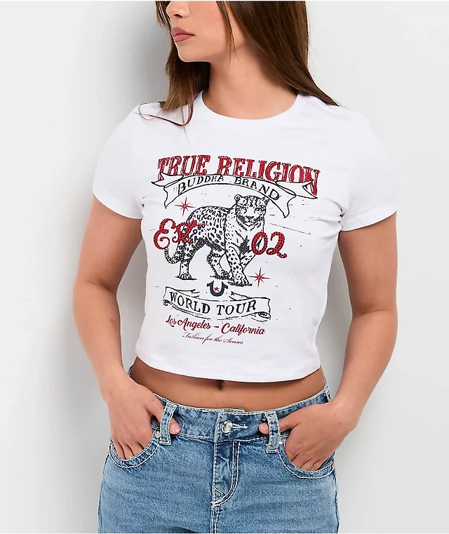 True Religion Buddha Crystal Brown Crop T-Shirt