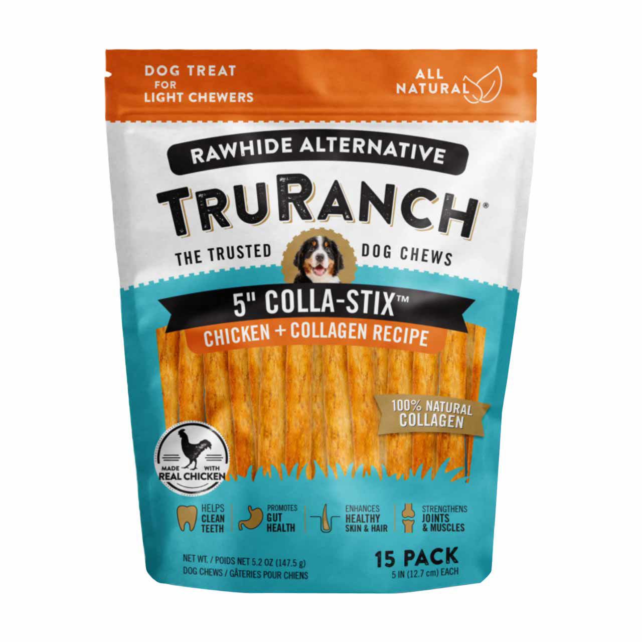 Tru Ranch 5" Colla-Stix Dog Chews, Chicken Flavor, 15 ct