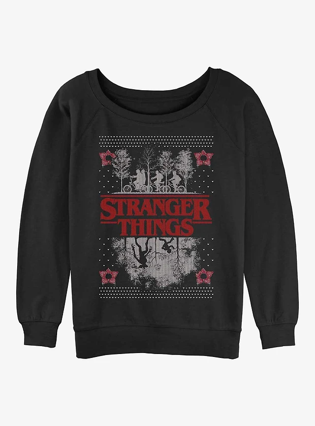 Stranger Things Upside Down Ugly Christmas Womens Slouchy Sweatshirt