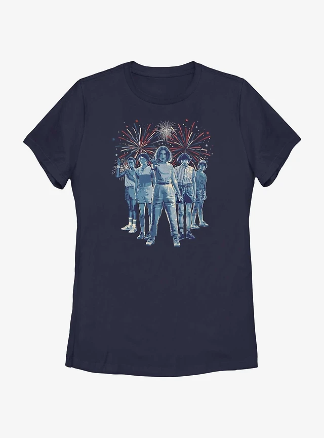 Stranger Things Group Fireworks Womens T-Shirt