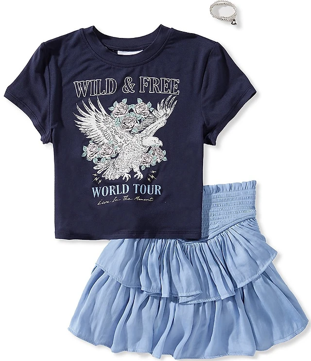 Girls 7-16 Wild and Free Graphic T-Shirt Chiffon Skort Set